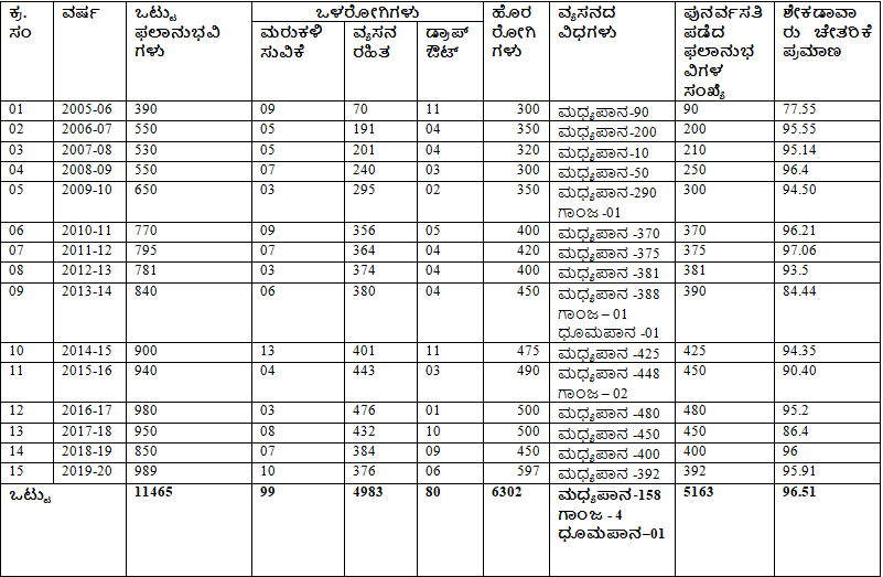 ಹೀಗೆ ನಮ್ಮ ಸಂಸ್ಥೆಯು ವ್ಯಸನಿಗಳಿಗೆ ಸೂಕ್ತ ಚಿಕಿತ್ಸೆ ನೀಡುವ ಉದ್ದೇಶದಿಂದ ಅಂತರ್ಜಾಲದಲ್ಲಿ ಸದಾ ಸಕ್ರಿಯವಾಗಿದ್ದು ವ್ಯಸನಿಗಳನ್ನು ಸಂಪರ್ಕಿಸಲಾಗುತ್ತಿದೆ.