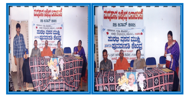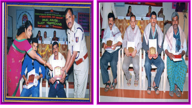 On 26th June 2005 Surabee Integrated Rehabilitation Centre for Addicts conducted International Day Against Drug Abuse and Illicit Trafficking programme, at Shimoga. In the presents of chief guests Mallikarjuna Swameeji of Sidharudha Math of Shivadurga, KSRTC Depot Manager T.L. Singh, Assistant Sub-Inspector of Police, Smt. Leelamma and Project Director of Surabee IRCA, Smt. V.V. Latha and all staffs of Surabee and beneficiaries were participated in the program.