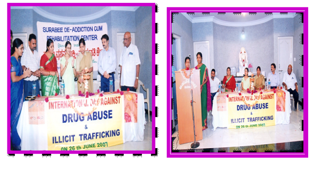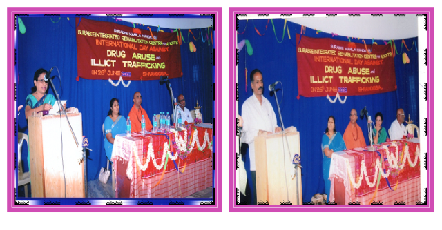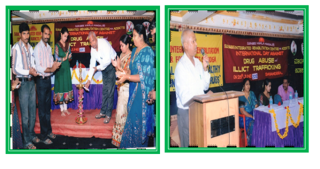 On 26th June 2007 Surabee Integrated Rehabilitation Centre for Addicts conducted International Day Against Drug Abuse and Illicit Trafficking programme, at Basava Kendra, Shimoga. In the presents of chief guests Dr. Pavitra, Psychiatrist, Shimoga, Smt. Sharavathi Police Inspector, Shimoga, and Project Director of Surabee IRCA, Smt. V.V. Latha and all staffs of Surabee and beneficiaries were participated in the program.