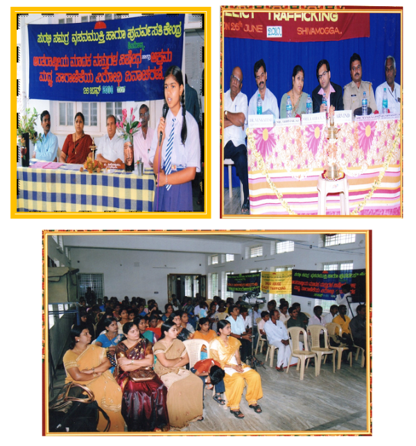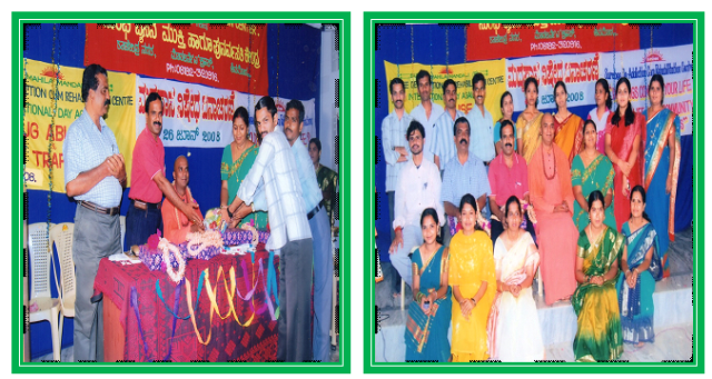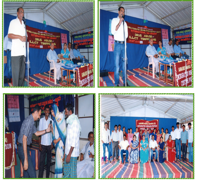 On 26th June 2008 Surabee Integrated Rehabilitation Centre for Addicts conducted, International Day Against Drug Abuse and Illicit Trafficking programme, at Auditorium Padhaveedhara Sangha, Shimoga. In the presents of chief guests Dr. Marula Sidha Swameeji, Mr. Pinto Secretory of Indian Red Cross Society Shimoga, and Project Director of Surabee IRCA, Smt. V.V. Latha and all staffs of Surabee and beneficiaries were participated in the program.