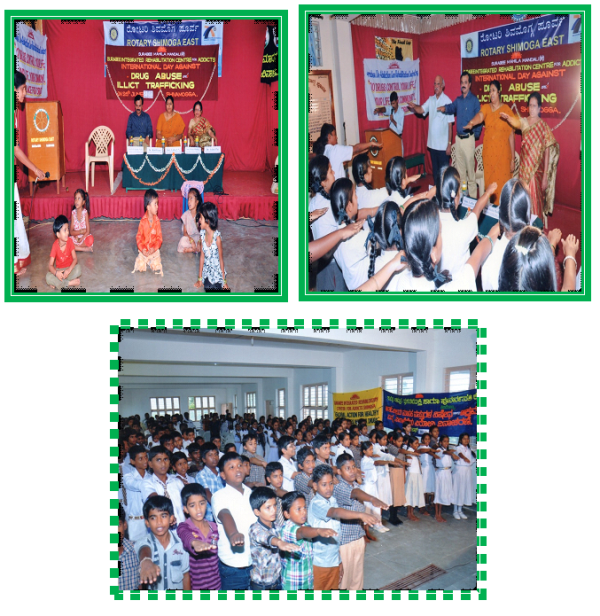 On 26th June 2011 Surabee Integrated Rehabilitation Centre for Addicts conducted International Day Against Drug Abuse and Illicit Trafficking programme, at Rotary High School , Shimoga. In the presents of chief guests Smt. Reeta Madta, Deputy Director of Women and child Development Dept. Shimoga, Head Master of Rotary High School, all staffs and students, and Project Director of Surabee IRCA Smt V.V. Latha, and all staffs of Surabee and beneficiaries were participated in the program.