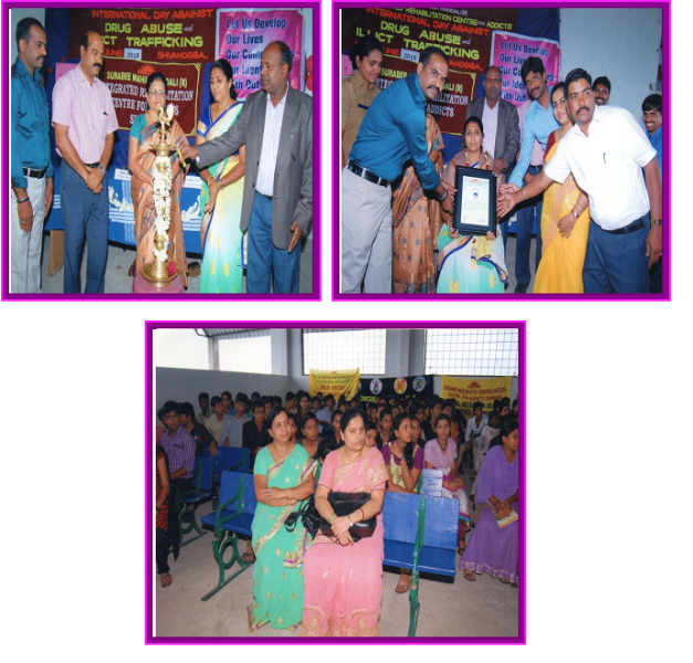 On 26th June 2018 Surabee Integrated Rehabilitation Centre for Addicts conducted International Day Against Drug Abuse and Illicit Trafficking programme, at National College, Shimoga. In the presents of chief guests Smt. Shilpa M. Doddamani, District Desabled welfare officer, Shimoga, Dr.Shashidhar, Psychiatrist, Shimoga, Mr. Chandrappa Assistant Sub-Inspector of Vinoba Nagara Police Station, Shimoga, Principal of National College, all staffs, and students and Project Director of Surabee IRCA and all staffs of Surabee and beneficiaries were participated in the program.